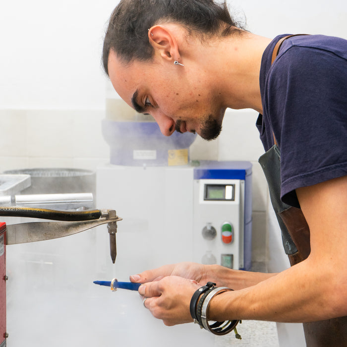 En Cesc és joier i s'ha especialitzat en el tall làser. A més, li encanten les pedres precioses. Té una col·lecció de gemmes rares i úniques digne de museu. Juntament amb en Jordi, s'encarrega de crear les joies noves i els teus encàrrecs.