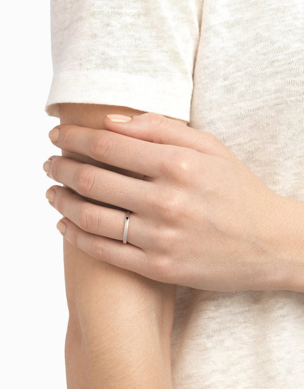 Joia fàcil de portar però increïblement simbòlica. La banda de noces Essence de Roosik&Co està dissenyada amb vores completament llises per garantir el màxim confort per al portador. En Jordi Rosich ha minimalitzat la composició de la peça, revelant l'essència de la banda de noces i reforçant així el simbolisme d'una peça de joieria. El resultat: una aliança discreta, de clau baixa però absolutament icònica.