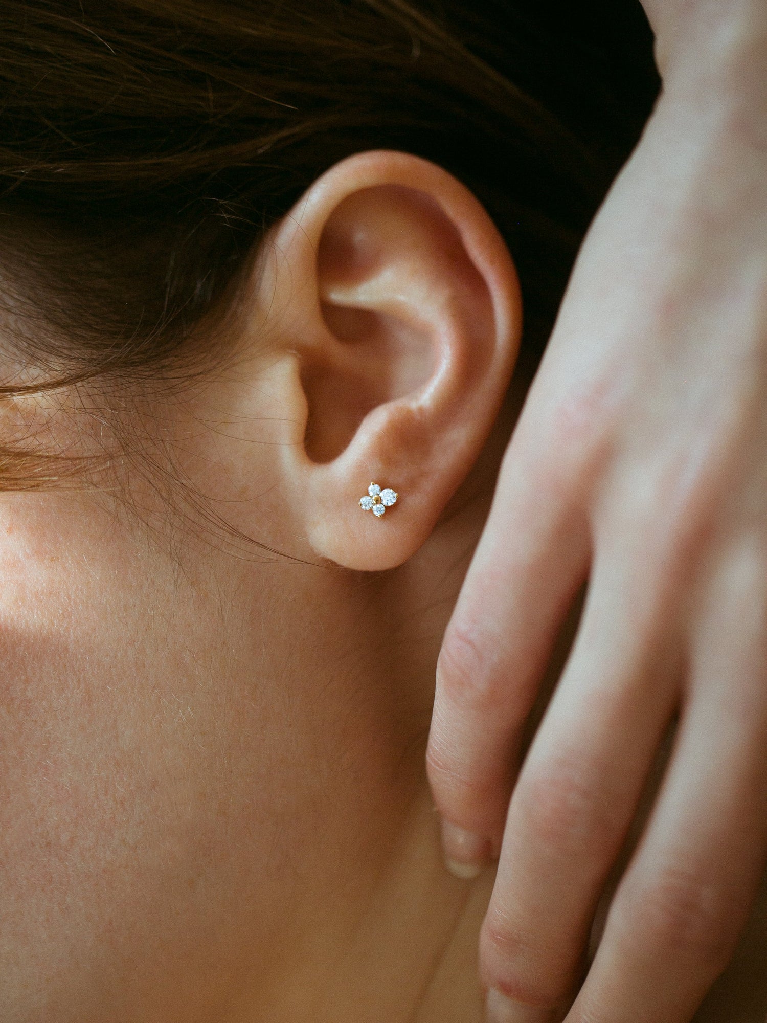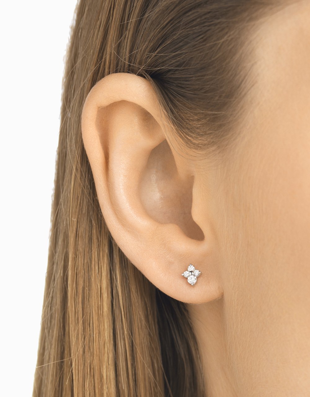 La combinació d’or blanc i els 4 diamants de mides diferents a cada peça composa un conjunt vibrant i delicat en aquestes arracades inspirades per l’exuberància de les flors. L’opció de treballar aquesta joia amb or blanc li aporta la lluminositat i elegància de les flors blanques. En qualsevol de les versions, Roosik & Co hi encasta diamants de talla brillant, color E, puresa de grau VVS1 i triple excel·lència, amb un total de 0,21 quirats.