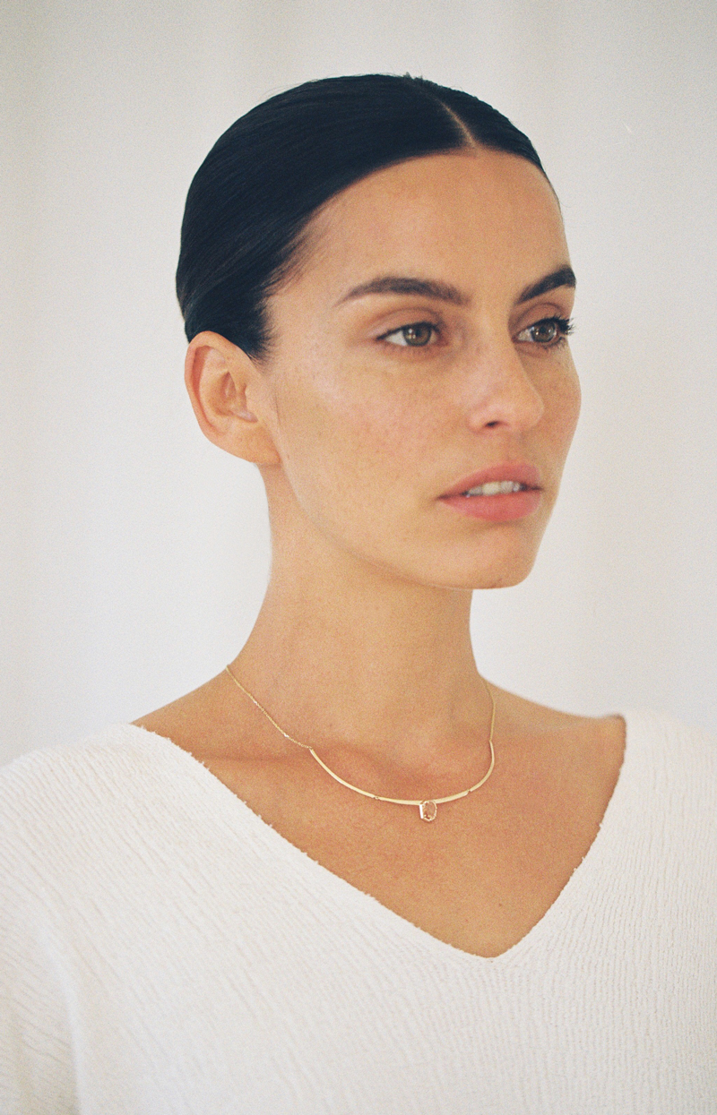 Jordi Rosich, joier i dissenyador de Roosik & Co, ha creat aquest collaret d'or groc combinant tres peces d'or rígides amb una cadeneta i un granat Malay únic. Aquest granat de color rosa préssec gaudeix d'unes propietats òptiques, d'un tall i d'una bellesa sense igual. Rosich ha treballat la montura d'or totalment a mida d'aquest meravellós granat.