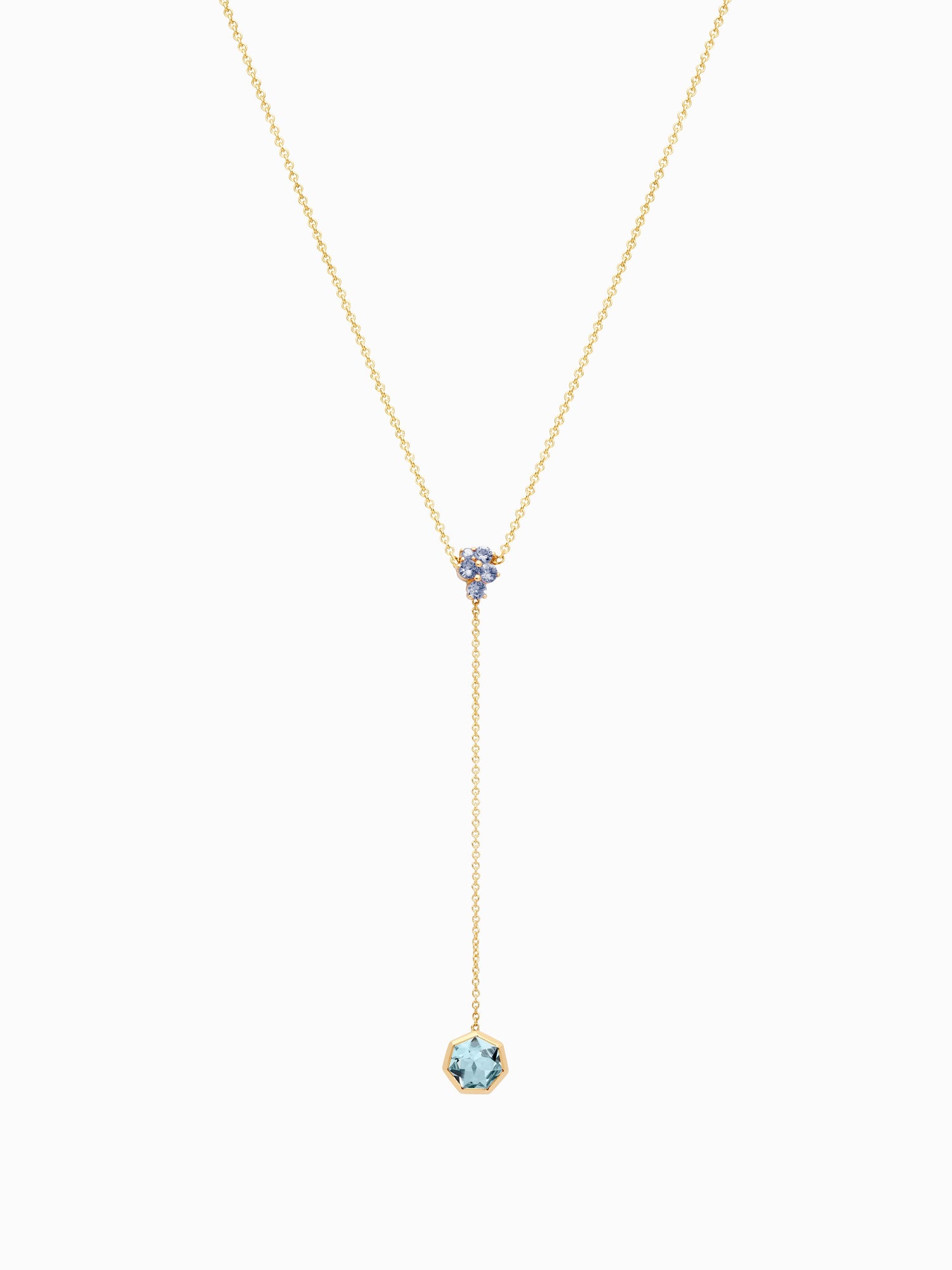 Un penjoll d’un contrast únic i bell, gràcies a la combinació de pedres precioses que Jordi Rosich -joier, clavador, gemmòleg i dissenyador de Roosik&Co- realitza amb especial cura. En aquesta joia uneix 1 Topazi amb 5 Safirs, també blaus. Per la seva banda, el Topazi es presenta en talla heptagonal, exclusiva de Roosik & Co, fet que aporta una reflexió de la llum única i molt bella a aquesta gemma. Aquesta joia s’ofereix també en d’altres combinacions d’or i amb pedres precioses.