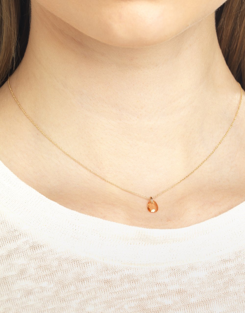 Un granat d'un intens color vermell encarna l’evocació del món de la natura en aquest penjoll d’or rosa de la col·lecció Blossom de Roosik&Co. La immensa diversitat de colors i matisos de les flors ha inspirat Jordi Rosich -joier, clavador i gemmòleg- en el disseny d’aquesta col·lecció que és alegre, vivificant i molt portable.