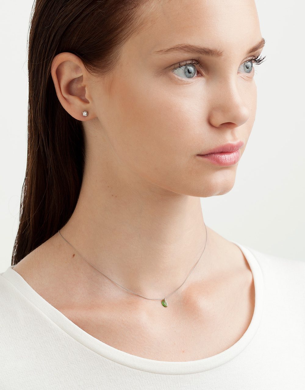Un granat verd d’un serè color verd encarna l’evocació del món de la natura en aquest penjoll d’or blanc de la col·lecció Blossom de Roosik&Co. La immensa diversitat de colors i matisos de les flors ha inspirat Jordi Rosich -joier, clavador i gemmòleg- en el disseny d’aquesta col·lecció que és alegre, vivificant i molt portable. Com aquest penjoll, que combina l’espinela amb una cadena delicada d’or blanc, que completarà qualsevol conjunt en què hi tinguin presència els blancs, els colors terra o fins i tot un estampat amb verds i blaus de mar.
