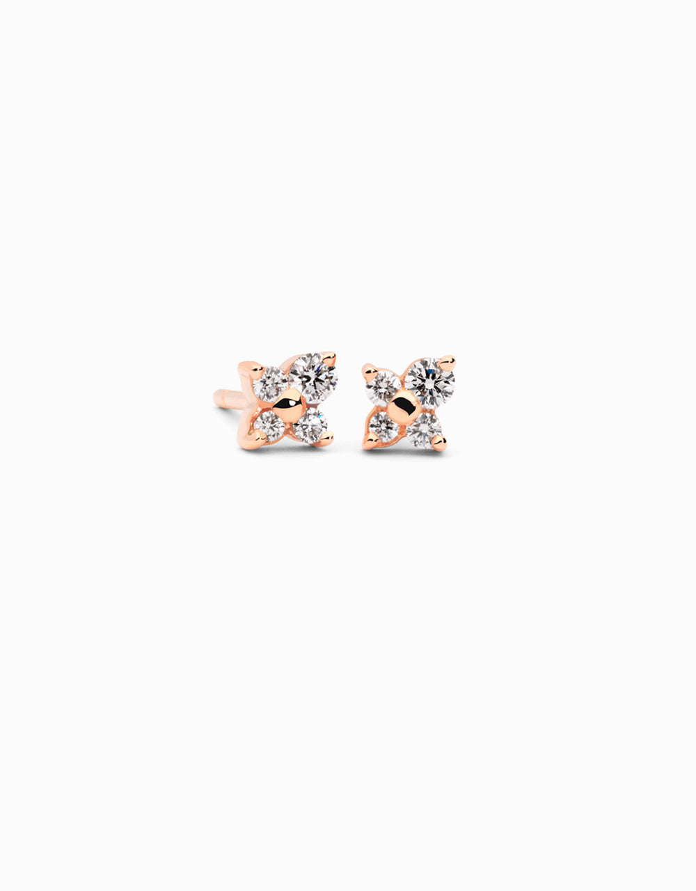 The combination of rose gold and the 4 diamonds of different sizes in each piece composes a vibrant and colorful ensemble in these earrings inspired by the exuberance of flowers. The option to work this jewel with rose gold gives it the luminosity and elegance of flowers in spring. In either version, Roosik & Co set brilliant-cut, E-color, VVS1 clarity and triple excellence diamonds, totaling 0.21 carats.