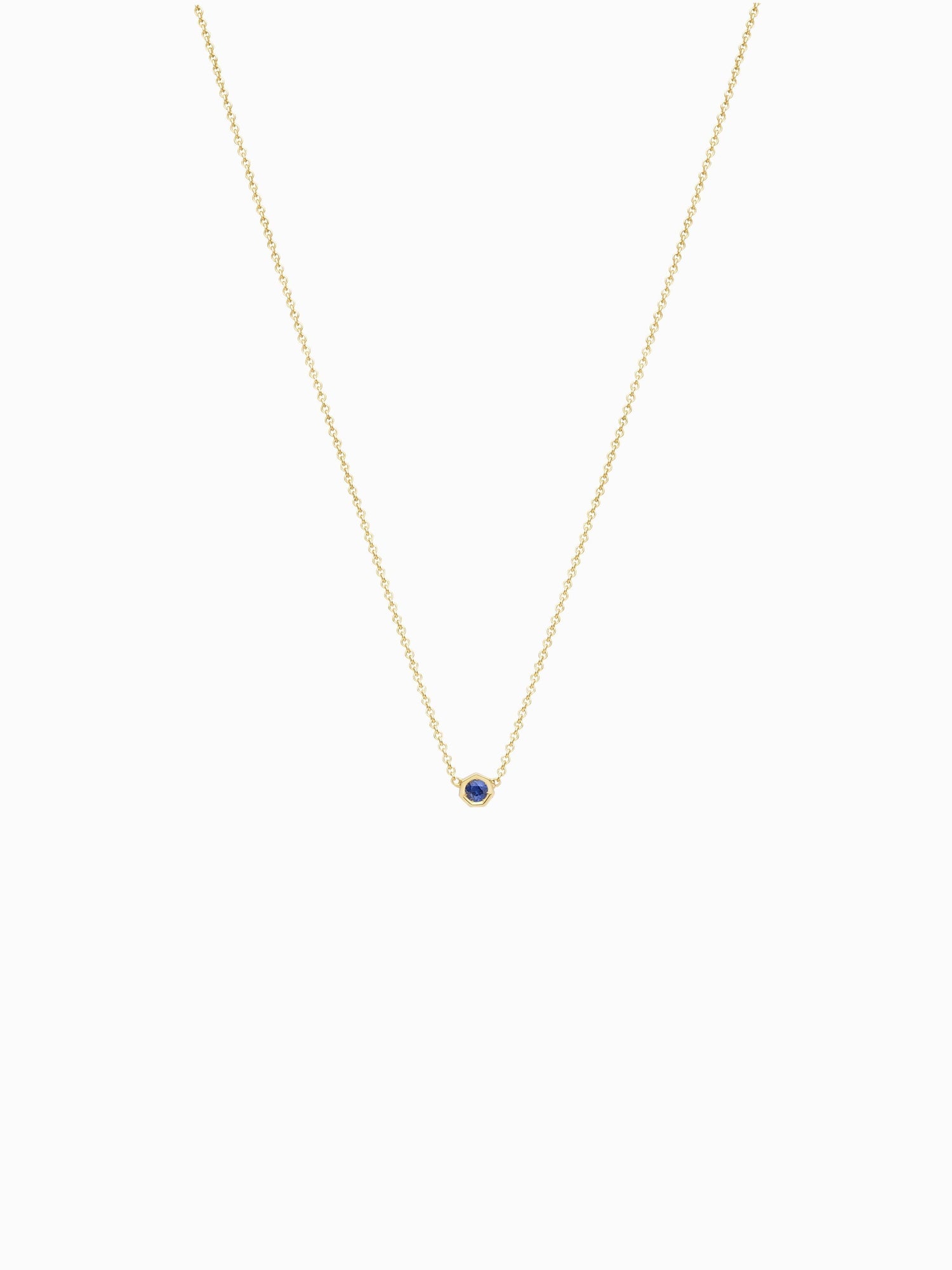 In this pendant, a precious blue sapphire is wrapped around a gold heptagon, the iconic figure of Roosik & Co. A subtle and original piece of jewelery to wear every day and at the same time be worthy of the most special occasions. It can be worn alone or combined with other pendants from the same collection with different precious stones: emerald, ruby, aquamarine, pink sapphire, yellow sapphire and diamond. We also work with 3 and 5 heptagons and we have the bracelets to make a beautiful set.