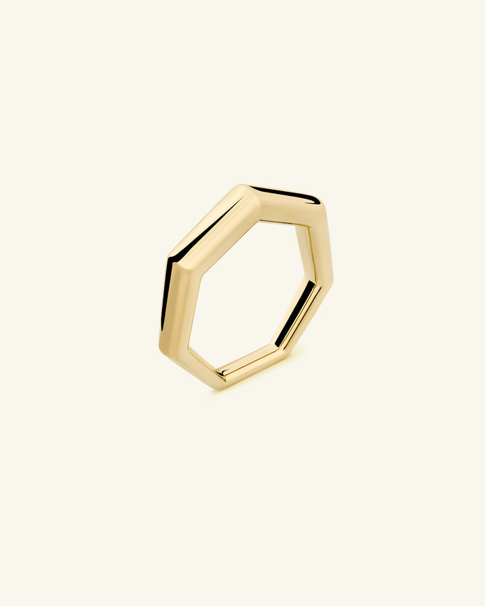 The heptagon looks splendid in 18k yellow gold and has a contemporary and magnetic design, capable of reflecting rays like a small Sun.