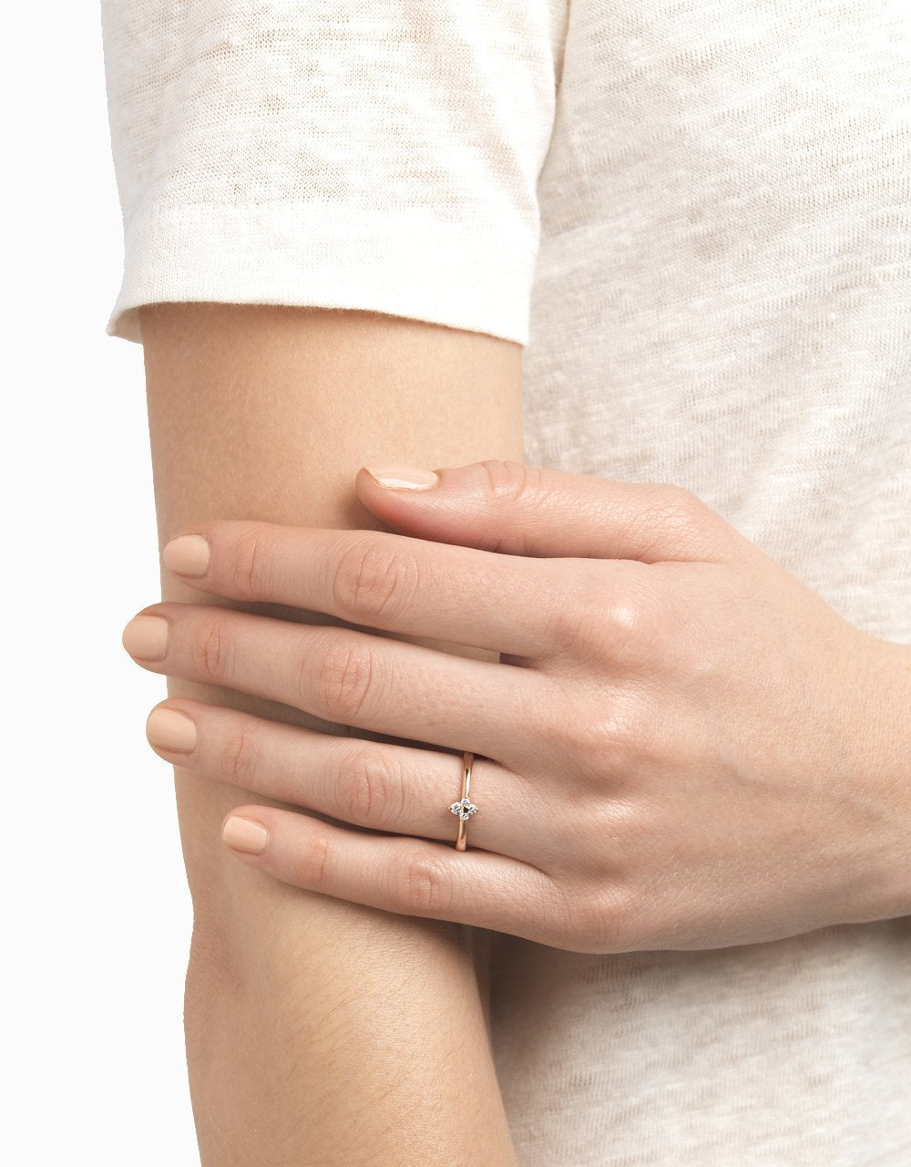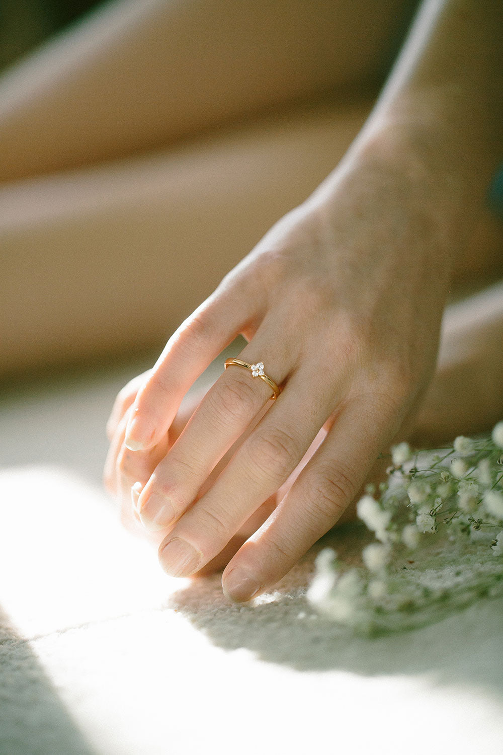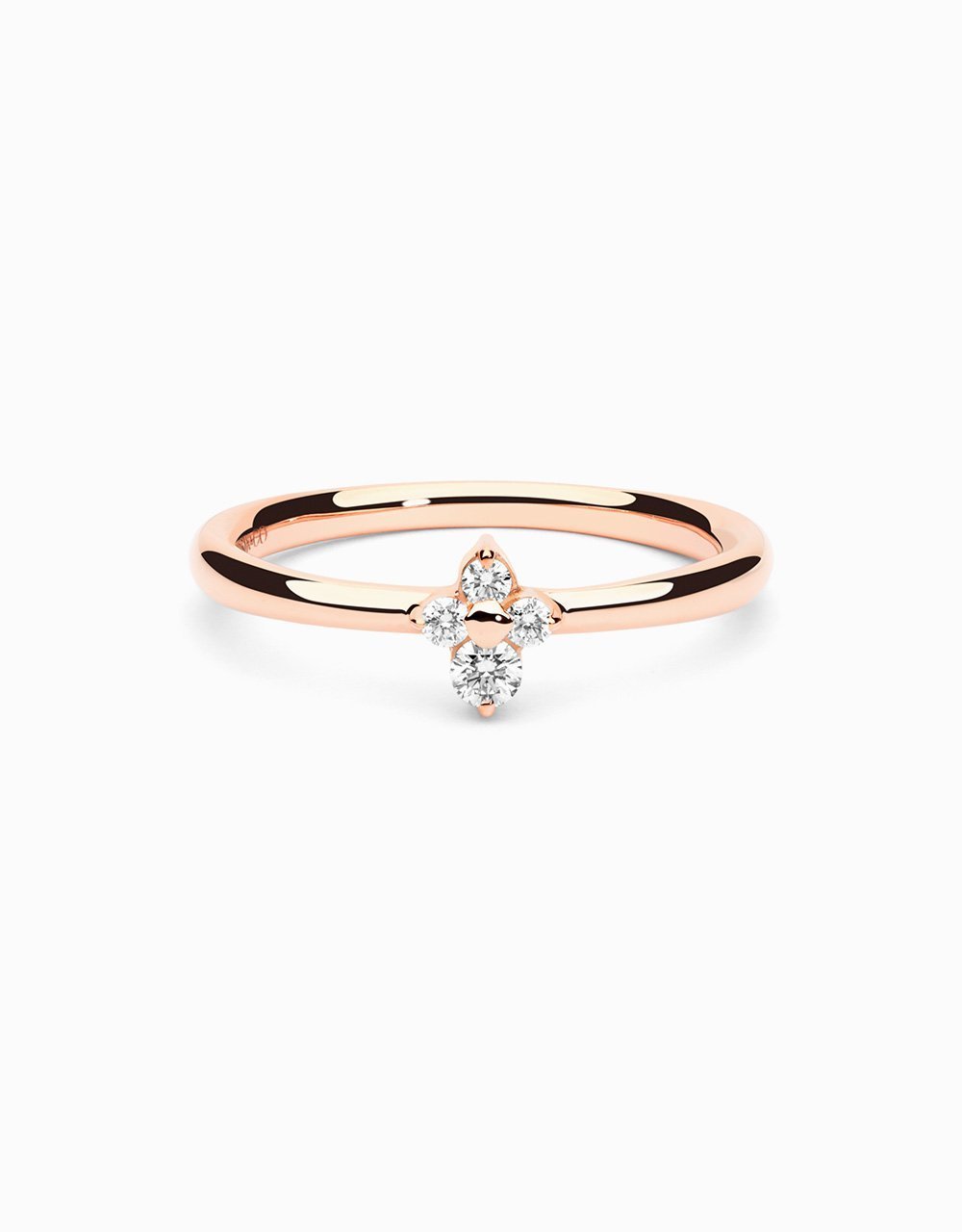 Las formas redondeadas del anillo Eternal Lilium aseguran la comodidad de esta pieza, a la vez que ponen más de relieve el adorno que le da personalidad. Se trata de una composición formada por 4 diamantes de un total de 18 quilates, pero con la gracia que le otorga la combinación de tamaños diferentes y la disposición, desplegando los diamantes a partir de un punto central tal y como lo hacen los pétalos en algunos lirios. El diseño de Roosik&Co. plantea este anillo en oro blanco, rosa o amarillo, y completa la serie con otras piezas de joyería con el mismo motivo.