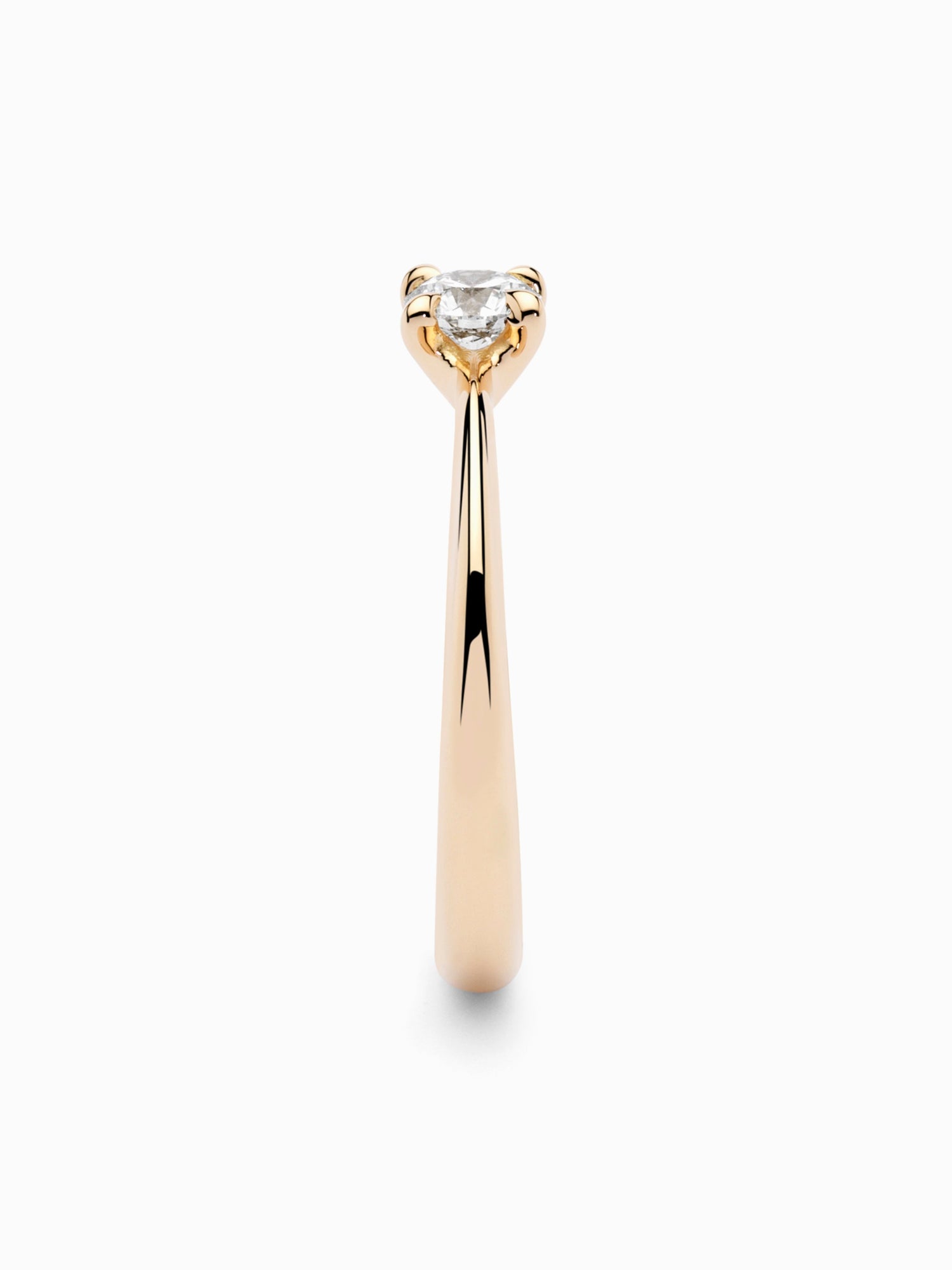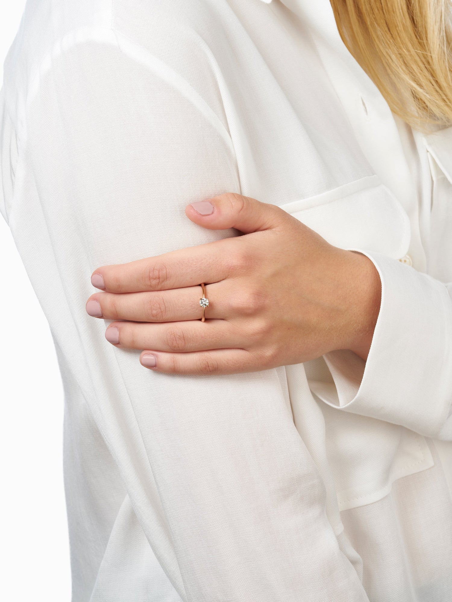 El diamante solitario, de 0,35 quilates, certificado por GIA con color E, pureza de grado VVS2 y triple excelencia (talla, simetría y pulido), cuenta con el certificado de Jordi Rosich, gemólogo titulado, y refleja el 99% de la luz recibida, alcanzando el máximo de luminosidad. Una joya que transmite toda la emoción del compromiso más especial y que Roosik & Co ofrece con distintas opciones de diamante, y en todos los colores de oro (oro blanco, oro rosa o oro amarillo).