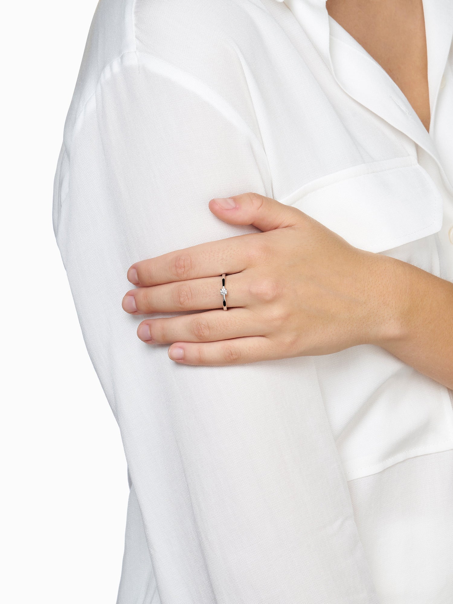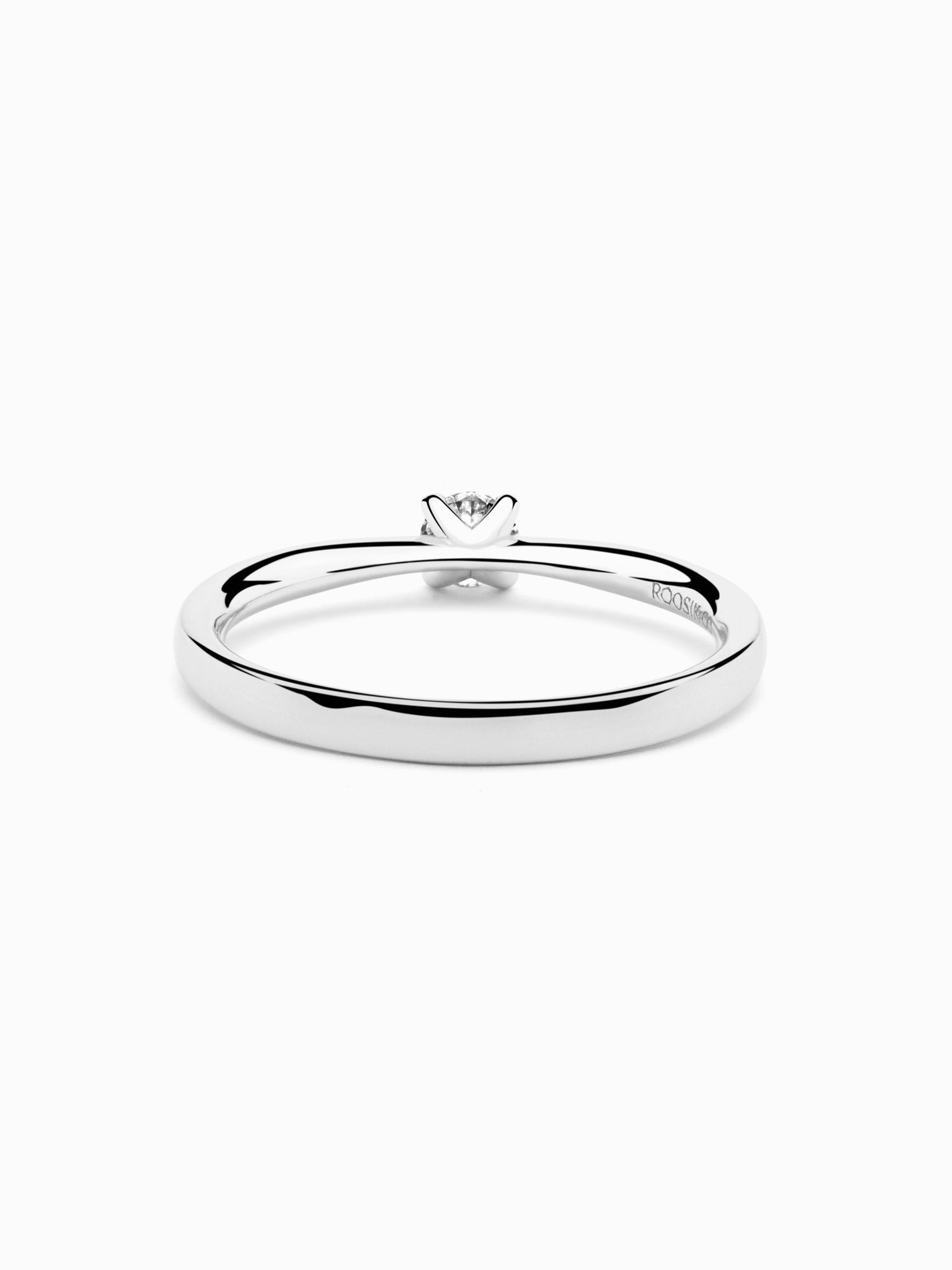 Un solitario como anillo de compromiso de la colección Eternal de Roosik&Co. Jordi Rosich -joyero, clavador, gemólogo y diseñador de la marca-, ha reducido al máximo la altura del solitario para conseguir el confort y la sutileza de la joya. El diamante es de 0,20 quilates, color E, pureza VVS2 y triple excelencia (corte, simetría y pulido), reflejando el 99% de la luz que recibe. Una prenda simbólica y perfecta para las mujeres que aman la discreción y el refinamiento.