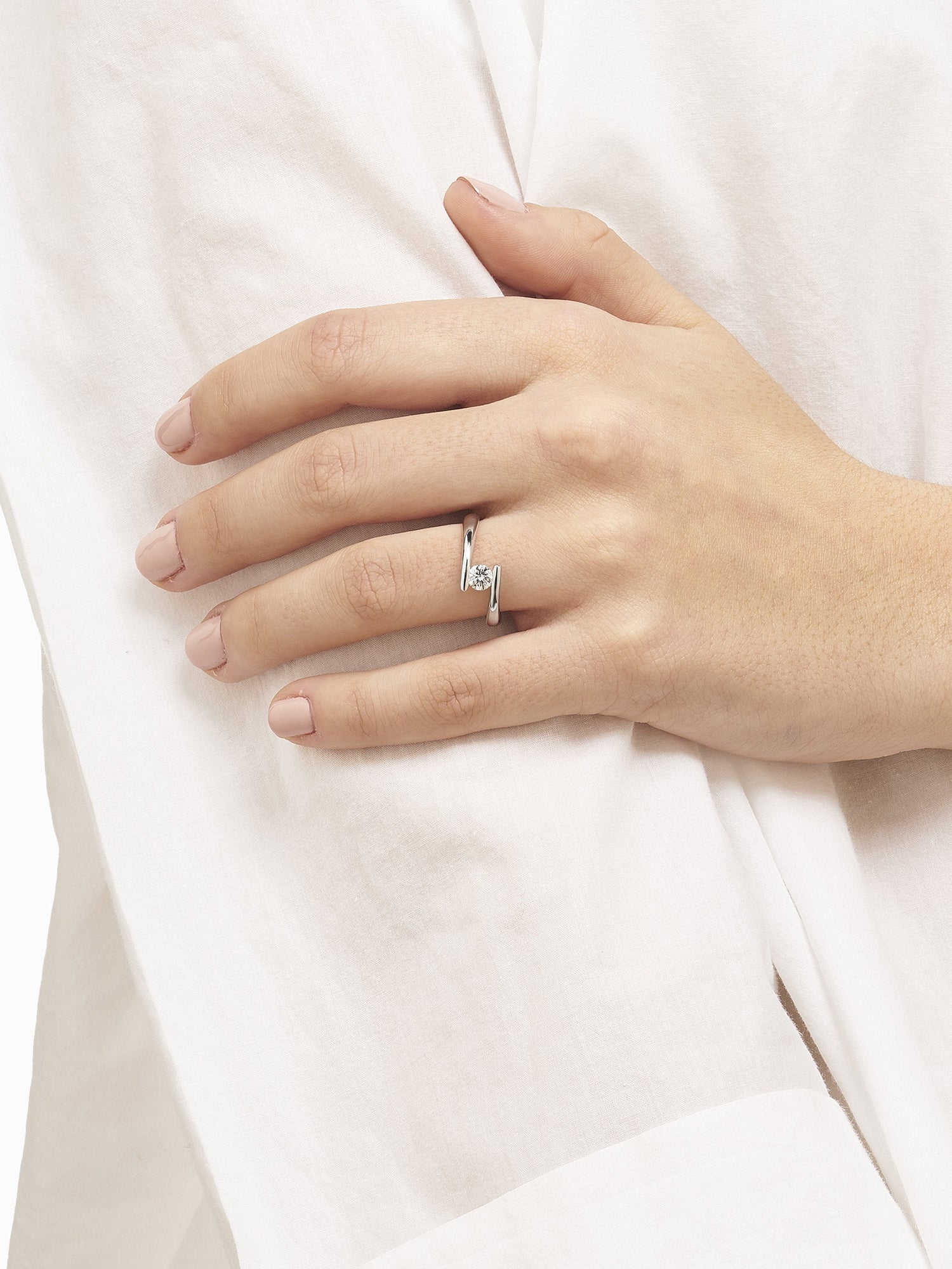 Como en todos los anillos de compromiso de la serie Hug que se enmarcan en la colección Eternal de Roosik & Co, los brazos de este solitario abrazan el diamante a la hora que lo sostienen. En este caso, Jordi Rosich ha dejado los extremos del anillo libres, por lo que, aunque siguen abrazando el diamante, lo hacen de una forma más abierta y franca. El diamante de 0,40 quilates que centra esta joya, así, se mantiene en equilibrio entre los brazos del anillo, trabajado en oro o platino para conseguir armonía estética y con los bordes redondeados para aportar comodidad a la hora de lucirlo. lo.