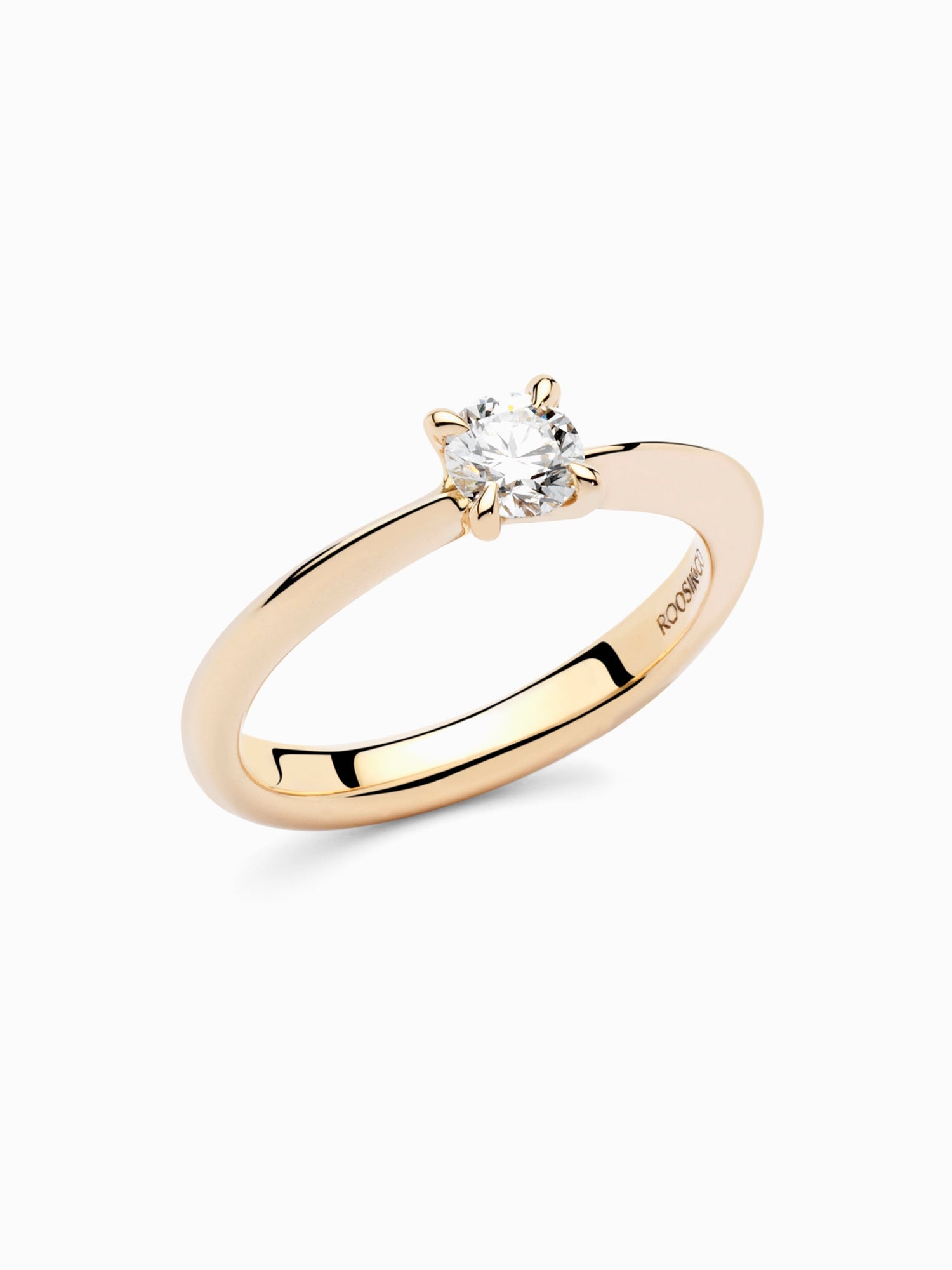 El diamante solitario, de 0,41 quilates, certificado por GIA con color E, pureza de grado VVS2 y triple excelencia (talla, simetría y pulido), cuenta con el certificado de Jordi Rosich, gemólogo titulado, y refleja el 99% de la luz recibida, alcanzando el máximo de luminosidad. Una joya que transmite toda la emoción del compromiso más especial y que Roosik & Co ofrece con distintas opciones de diamante, y en todos los colores de oro (oro blanco, oro rosa o oro amarillo).