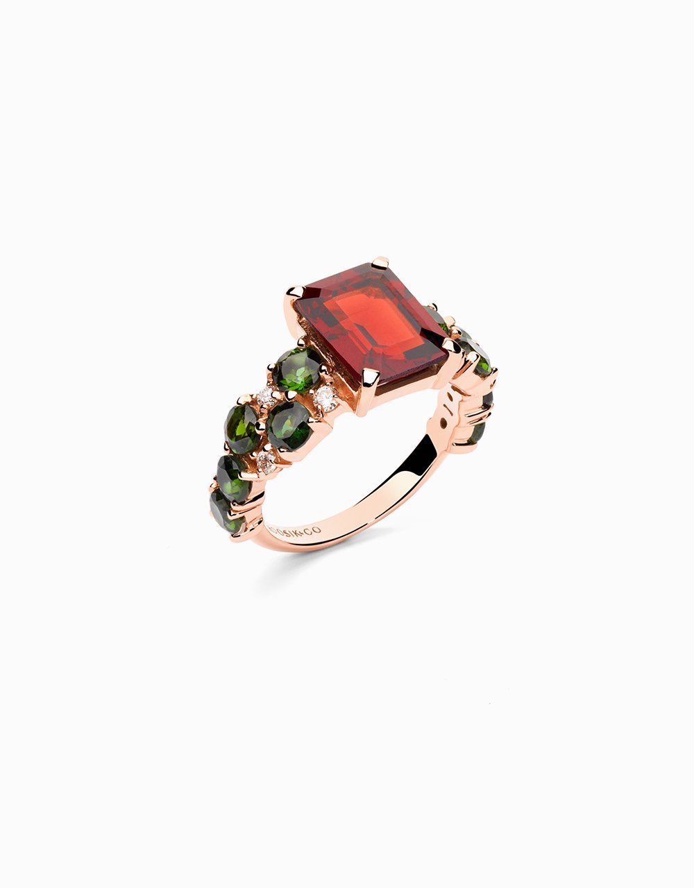 ANILLO CON TURMALINAS, GRANADO Y DIAMANTES EN ORO ROSA