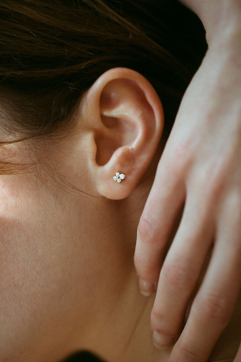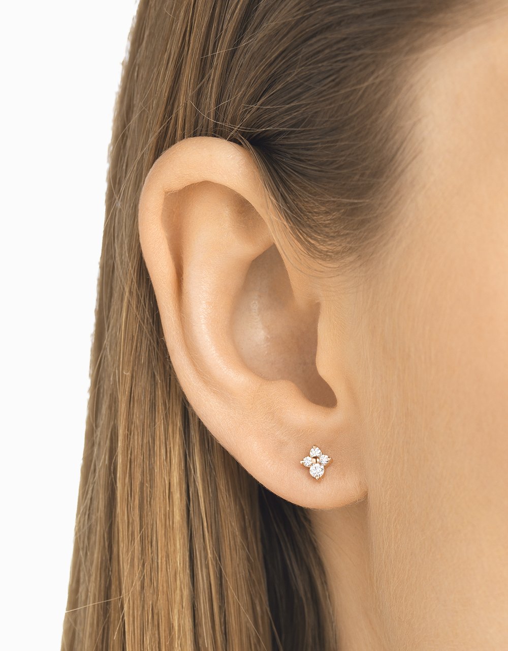 La combinació d’or rosa i els 4 diamants de mides diferents a cada peça composa un conjunt vibrant i colorista en aquestes arracades inspirades per l’exuberància de les flors. L’opció de treballar aquesta joia amb or rosa li aporta la lluminositat i elegància de les flors roses. En qualsevol de les versions, Roosik&Co. hi encasta diamants de talla brillant, color E, puresa de grau VVS1 i triple excel·lència, amb un total de 0,21 quirats.
