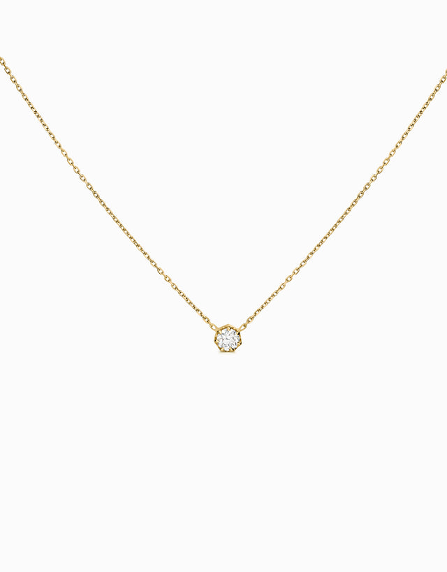 La reinterpretació del solitari clàssic. El penjoll Heptasolitaire transforma una joia de tall clàssic i li aporta un toc fresc i original. Jordi Rosich, joier i dissenyador de Roosik&Co, l'ha treballat amb la nostra icònica montura heptagonal, de manera que el diamant queda subjectat per 7 grapes minimalistes que cedeixen el protagonisme absolut a la reina de les gemmes.
